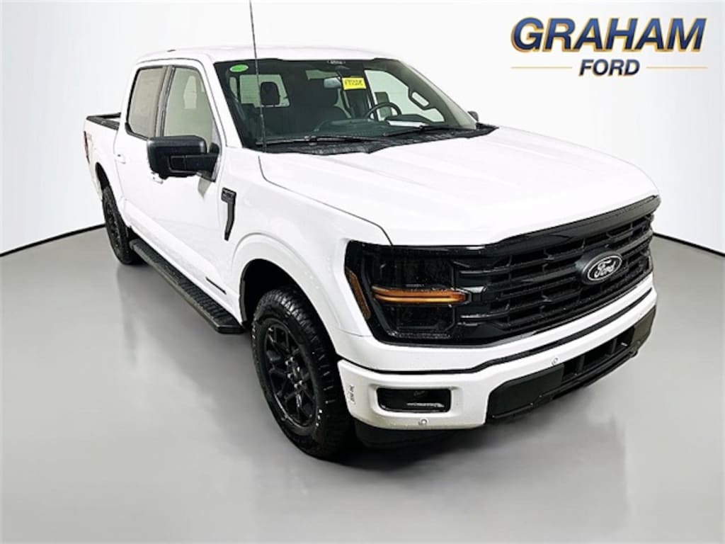 F-150 XLT, 4D SuperCrew, 3.5L PowerBoost Full-Hybrid V6, 10-Speed Automatic, 4WD, OXFORD WHT, Blk Unique Sport Clth 40, 360 Degree Camera, 4-Wheel Disc Brakes, 400W Cab & Bed Outlets, 6" Angular Bright Anodized Step Bar, ABS brakes, Adaptive Cruise Control w/Stop & Go, Auto-Dimming Rear-View Mirror, Black Painted Grille w/Chrome Center Bar, Chrome Door & Tailgate Handles, Chrome Single-Tip Exhaust, Cloth 40/Console/40 Front Seats, Connected Navigation, Console Worksurface, Driver State Detection, Dual front impact airbags, Dual front side impact airbags, Dual-Zone Electronic Automatic Temperature Control, Emergency communication system: SYNC 4 911 Assist, Equipment Group 302A Mid, Evasive Steering Assist, Ford Co-Pilot360 Assist 2.0, Front anti-roll bar, Front Parking Sensors, Front wheel independent suspension, Heated Front Seats, Intelligent Access w/Push Button Start, Low tire pressure warning, Mobile Office Package, Occupant sensing airbag, Overhead airbag, Partitioned Lockable Rear Storage, Power Glass Heated Sideview Mirrors, Power-Sliding Rear Window, Remote Start System w/Remote Tailgate Release, Towing Technology, Traction control, Wrapped Steering Wheel. 2025 Ford F-150 XLT $8,121 off MSRP!
